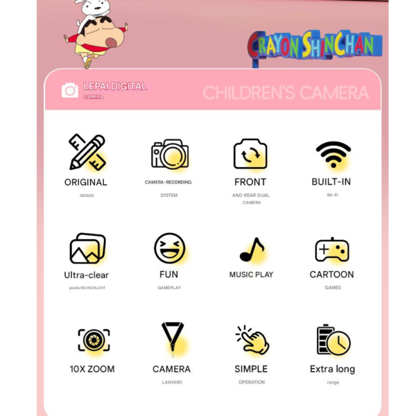 • Fun and colorful Crayon Shin-chan design makes photography exciting.