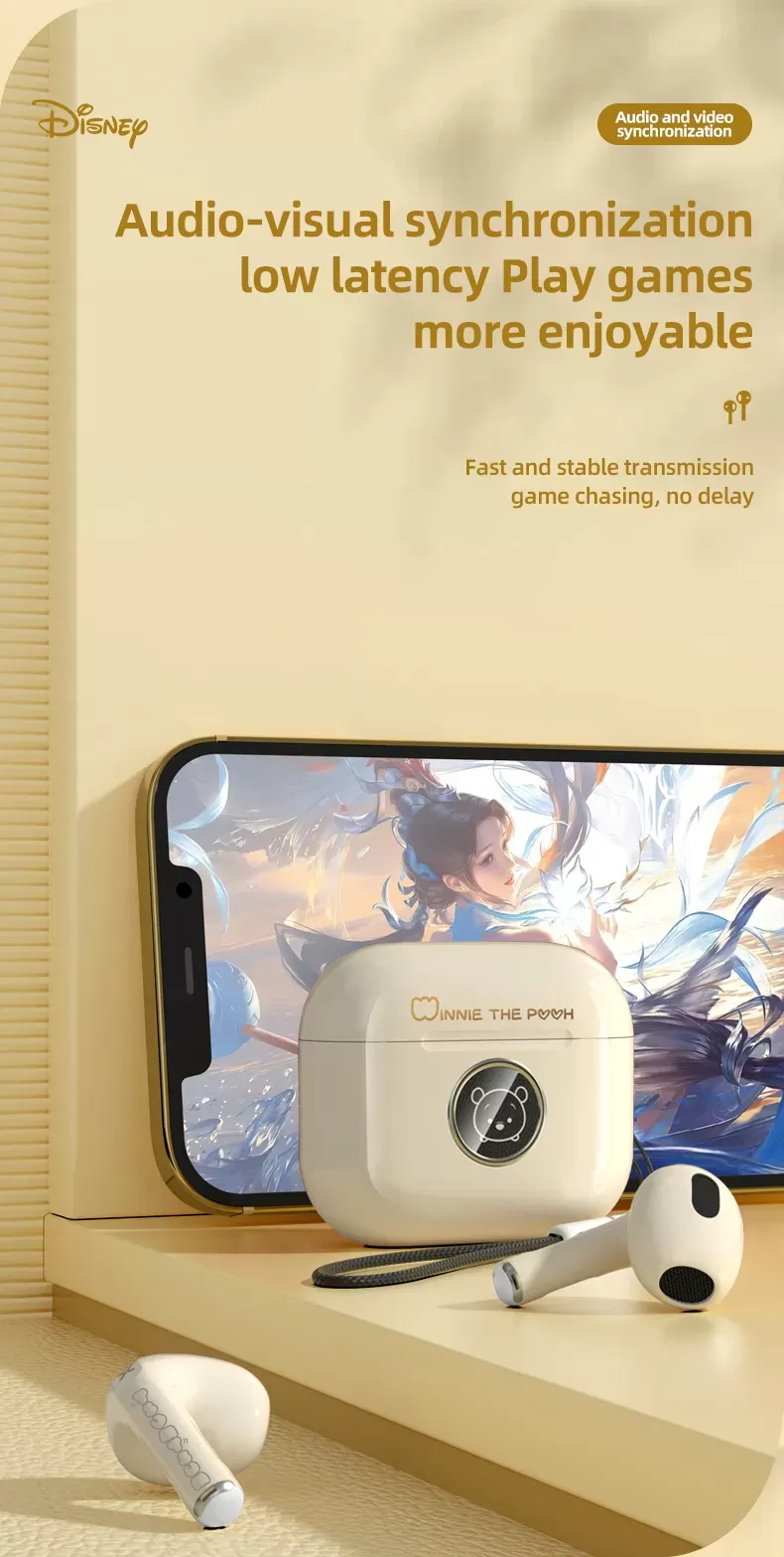 سماعة أذن لاسلكية بلوتوث LY-887 من ديزني، سماعة أذن للألعاب والموسيقى والرياضة لتقليل الضوضاء