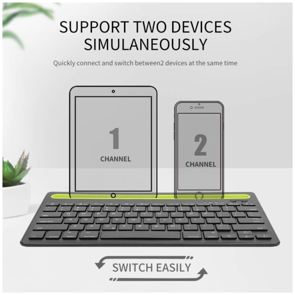 ⬅️ تدعم لوحة مفاتيح البلوتوث متعددة الأجهزة جهازين متصلين في وقت واحد وتسمح بالتبديل السلس (Bluetooth 3.0 + Bluetooth 3.0).