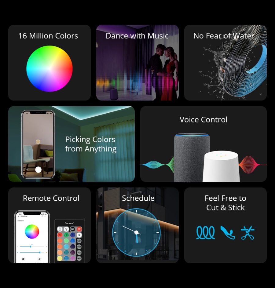 • يقدم أكثر من 16 مليون لون وتنوعات لا حصر لها ومزامنة في الوقت الفعلي تجربة مرئية رائعة لمنزلك ..