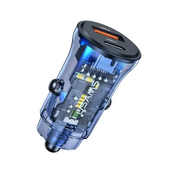 شاحن موبايل شحن سريع 30 وات 2 منفذ A + C محول شاحن سيارة صغير سريع الشحن ثنائي المنفذ
